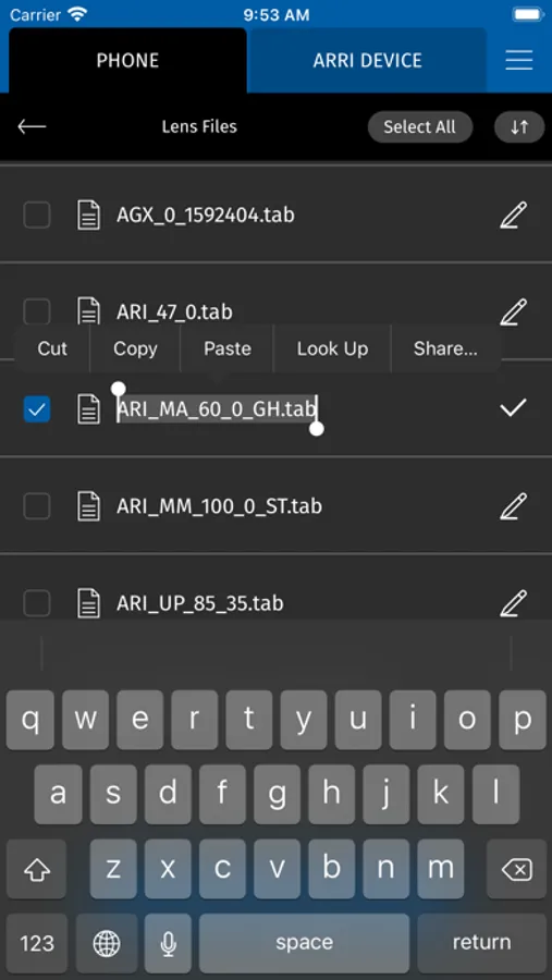• Distribute lens tables and user setup files from the app via email, WhatsApp, Dropbox, Google Drive and more
