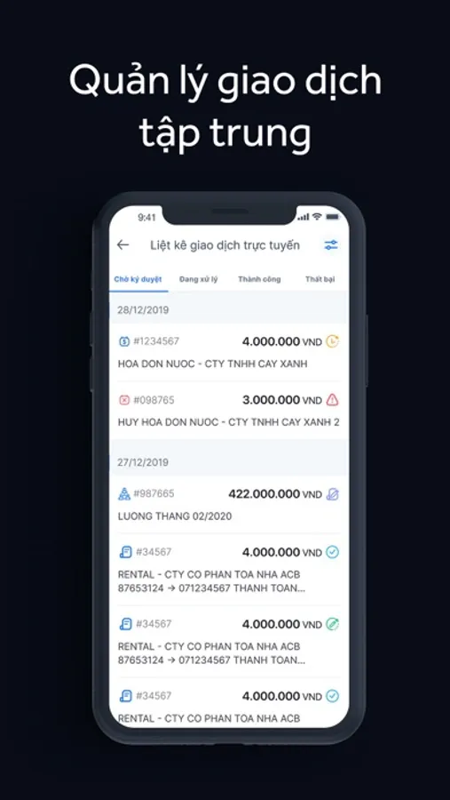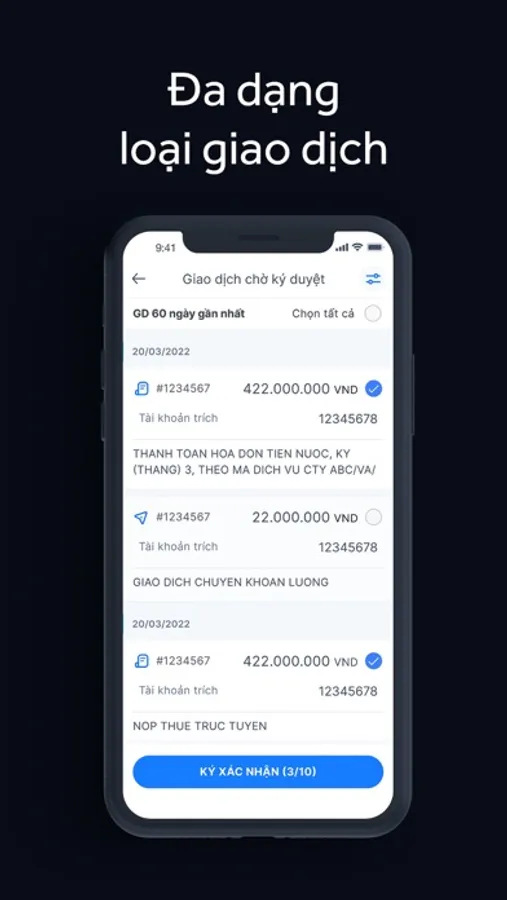 By simple steps, entrepreneurs can view full information about all types of business accounts, including Checking accounts, time deposit accounts, Loan accounts, Cards, and their transaction history. It also supports downloading payment orders of accounts.