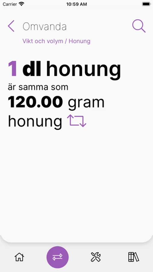 - Omvandling mellan vikt och volym - t.ex. vad väger egentligen en DL vetekli?