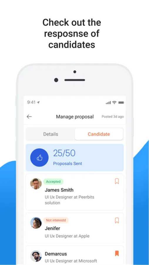 Apart from this, employers can also track the progress of their proposal for the app's home screen. From here, the employers can check out the number of proposals and can also know how many candidates have liked the proposal. Along with this, employers can bookmark the candidates with which they want to connect later on.