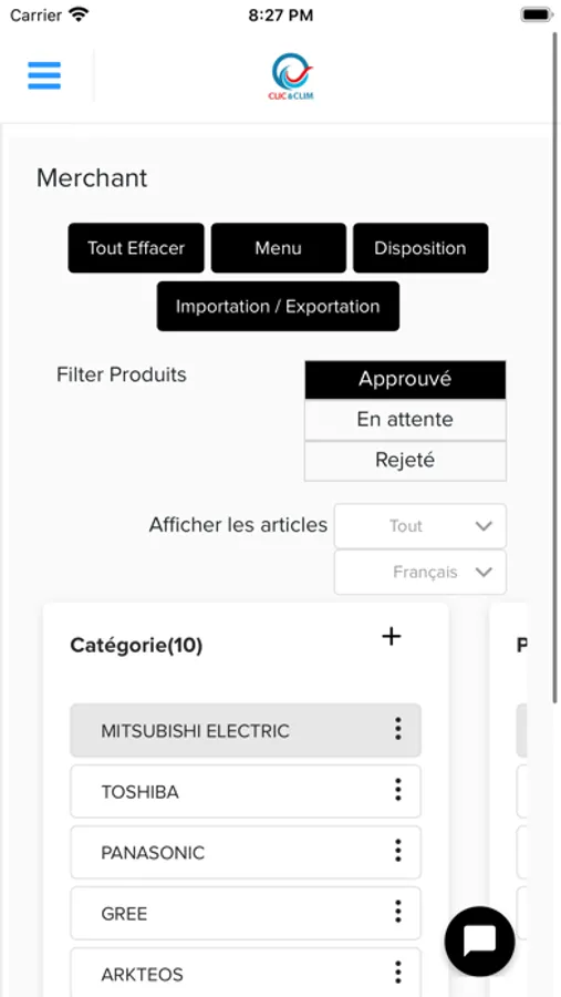 Clic&Clim Pro donne accès aux professionnels membres du réseau Clic&Clim, à un tableau de bord personnalisé pour gérer les commandes en ligne, mettre à niveau leur e-shop et accéder à différents services offerts par la plateforme Clic&Clim.
