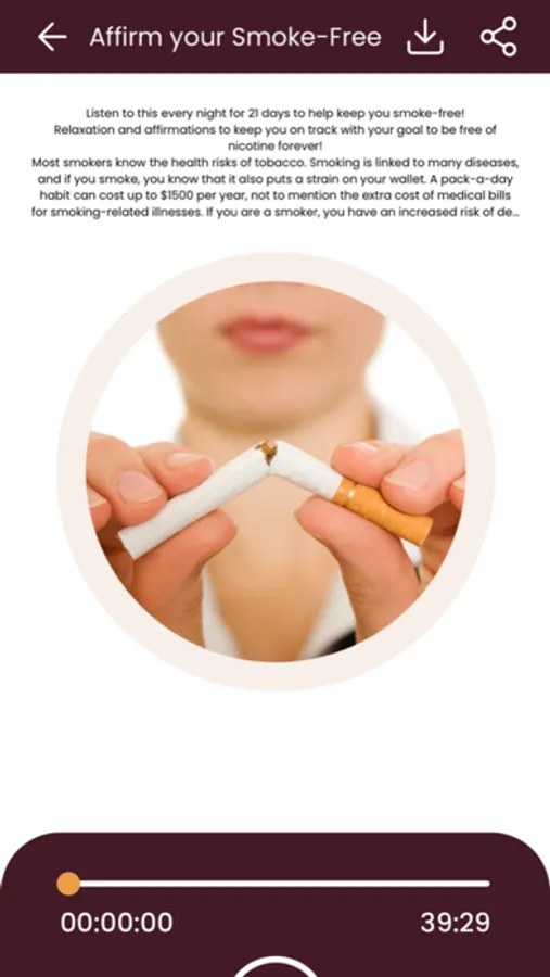 Download Quit Smoking Hypnosis for free on your iPhone or iPad device and let us help you break the habit of smoking cigarettes. No medication is required; you will only need to listen to hypnosis sessions to reach your subconscious.
