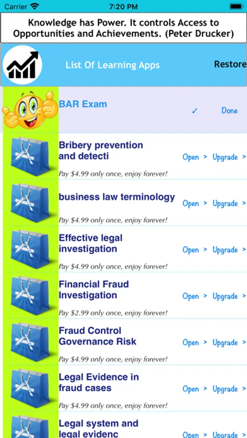 This app bundle contains the Best learning apps covering Law, legal evidence, Fraud, for Law students, LLP, Attorneys, BAR exams and Legal professionals.