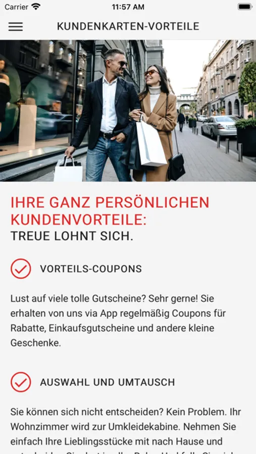 2. Gutscheine:Bling! Bling! Wir schicken Ihnen Ihre persönlichen Vorteile direkt per Push-Nachricht, wie z.B. €-Coupons, Rabatte, Einkaufsvorteile, Give-aways und kleine Geschenke. Ihre Gutscheine können Sie direkt über die App in unseren Häusern einlösen.
