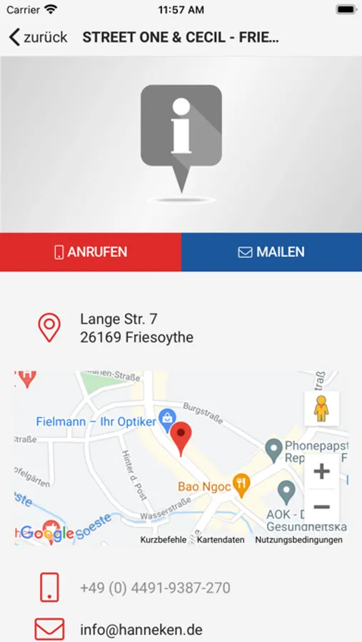 3. Über uns:Welche Filiale hat wann geöffnet? In der App steht alles drin. Ein Blick auf die Map verrät Ihnen außerdem, wie Sie am besten zu uns fahren.