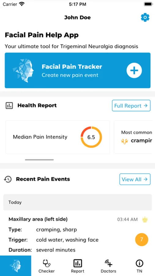 The Facial Pain Help application is a personal facial pain tracking application designed to support people who suffer from conditions such as Trigeminal Neuralgia.