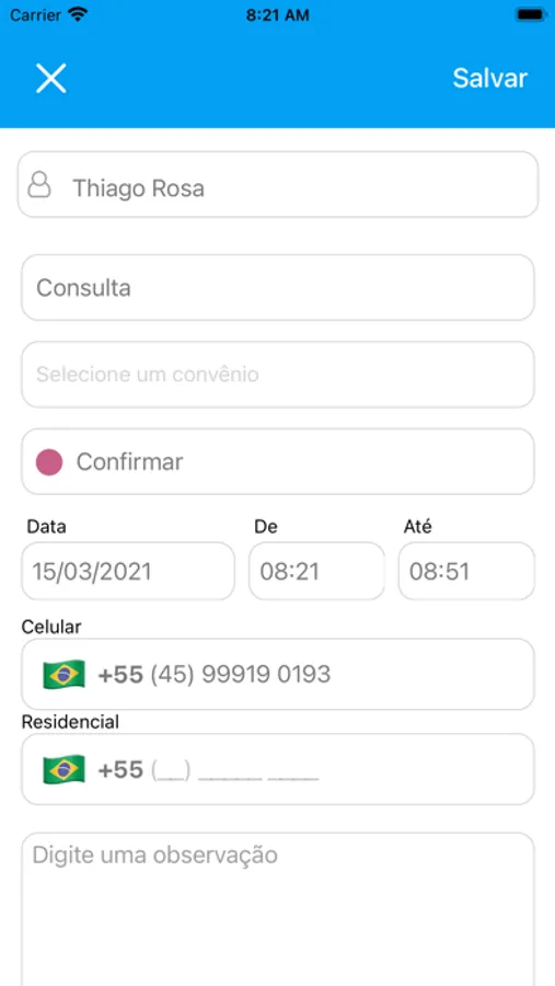 - Se você encontrar algum amigo ou cliente na rua, você poderá criar o agendamento em segundos pelo o App e a sua secretária ficará sabendo na hora pois o sistema web no consultório será atualizado.