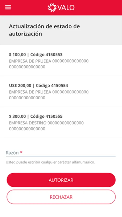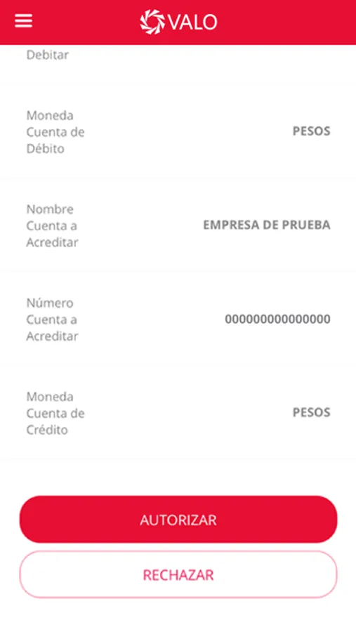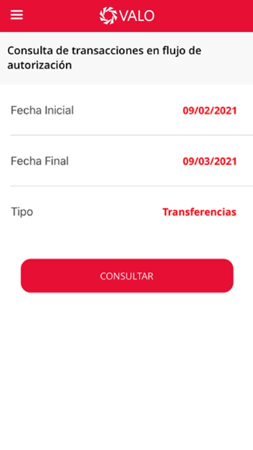 Esta aplicación te permitirá visualizar información detallada de tus transferencias pendientes de autorización con el Banco de Valores.