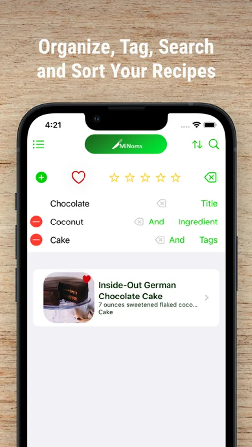 FIND your recipes when you want them - you can search recipes by any combination and number of: name, ingredient, notes, rating, favorites, and tags. You can use any number of your own tags to categorize your recipes for easier searching.