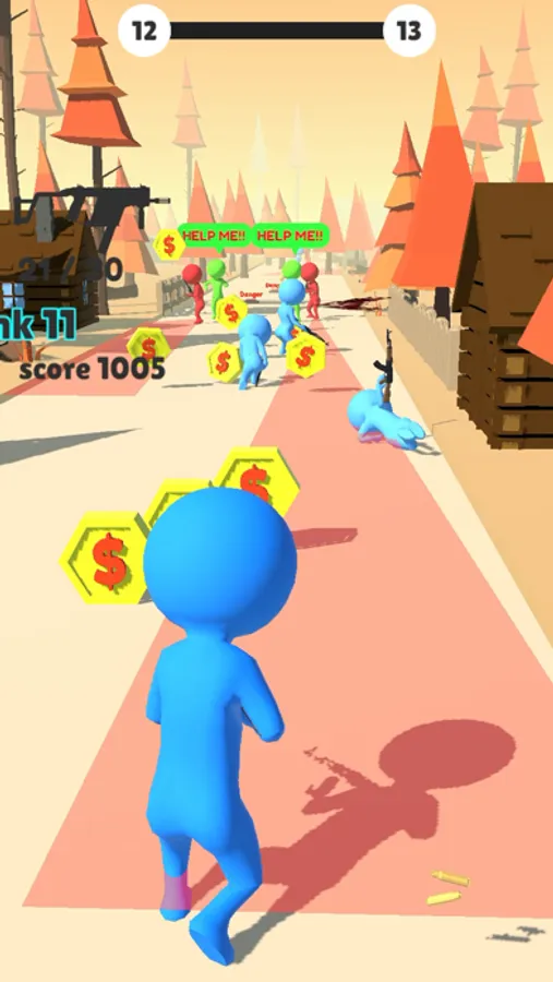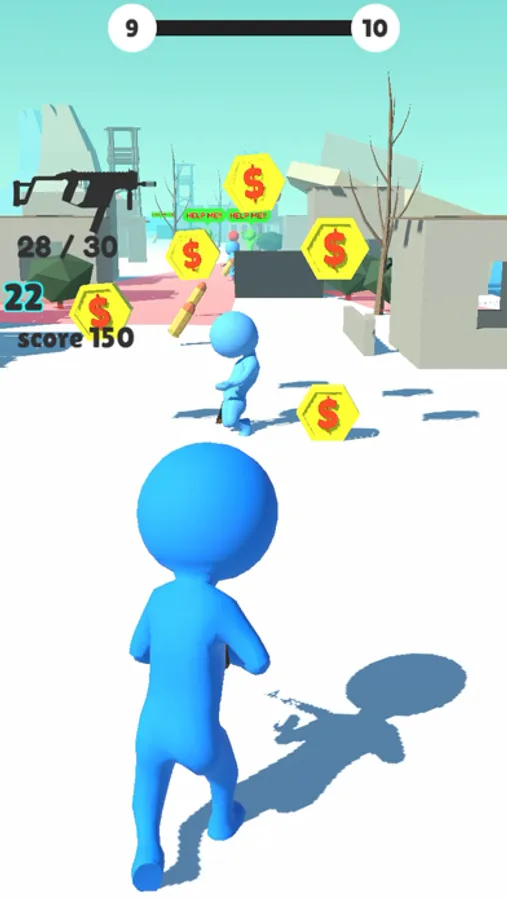 Drag and run. Release to shoot enemies. Be careful not to enter the enemy's sight