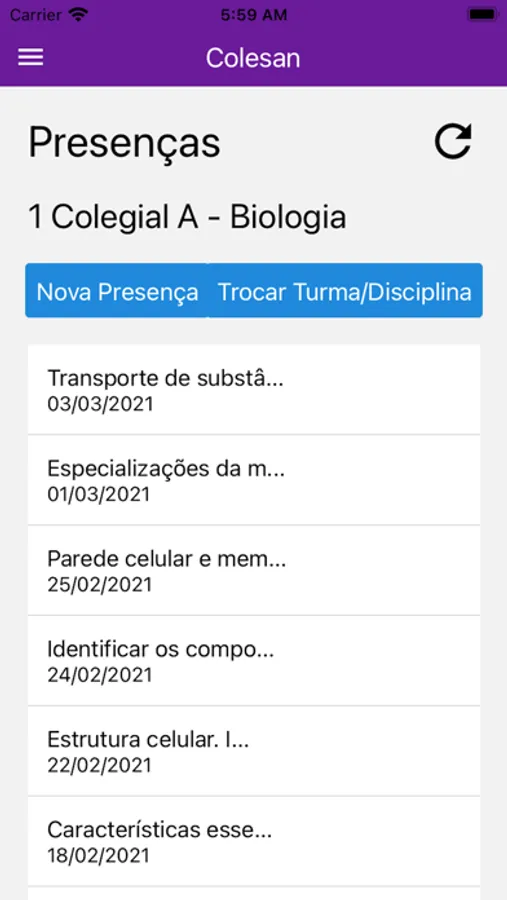 Sistema para controle da Vida Escolar do aluno com presencas, faltas e notas dos alunos.