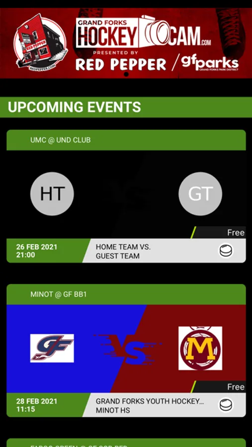 View live Grand Forks Youth Hockey, Figure Skating, & High School Hockey events