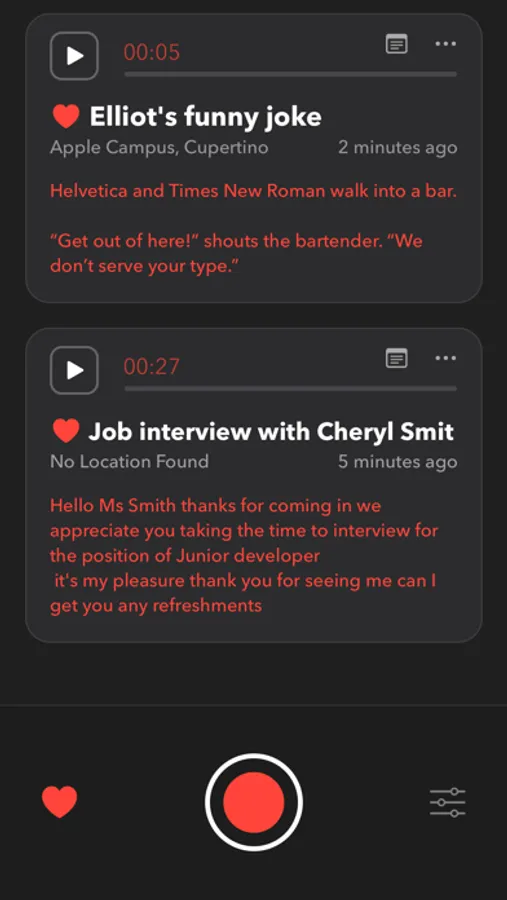 An easy-to-use elegant voice memo app with a built-in speech-to-text transcription system.