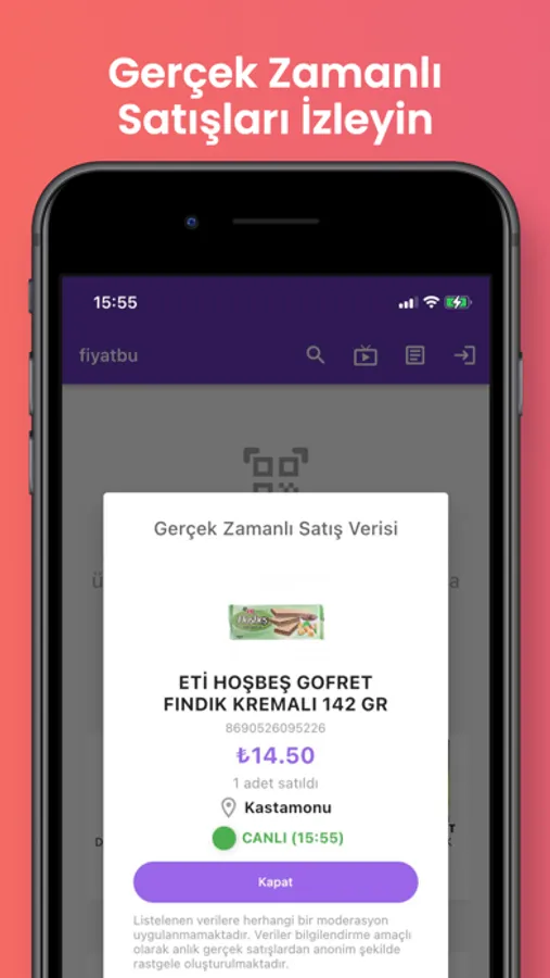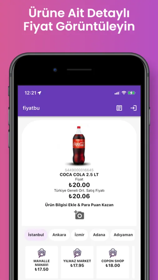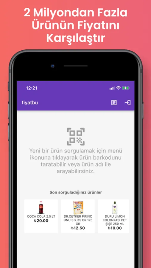fiyatbu barkod sorgulama uygulaması ürün barkod numarasına veya adına göre ürün isim ve fiyat bilgilerini sorgulamanızı sağlayan bir uygulamadır. fiyatbu ile ürünleri gerçek market fiyatlarına göre sorgulayabilirsiniz. Bilindik sorgulama uygulamaları gibi internet sitelerindeki fiyatları değil doğrudan gerçek mağaza fiyatlarını size getirir. Barkod numarası olan herhangi bir ürünü uygulamaya okutmanız yeterlidir. Ya da ürün adına göre arama yaparak sorgulama yapabilirsiniz. Uygulama size ürünün sistem fiyatını ve Türkiye genelindeki ortalama satış fiyatını getirecektir. Ayrıca şehirsel barkod sorgulama özelliği ile herhangi bir ürünün şehir şehir satış fiyatlarını görebilirsiniz. Böylece yapacağınız satın alma önceki en doğru kararı verebilirsiniz.