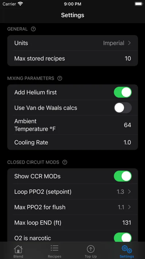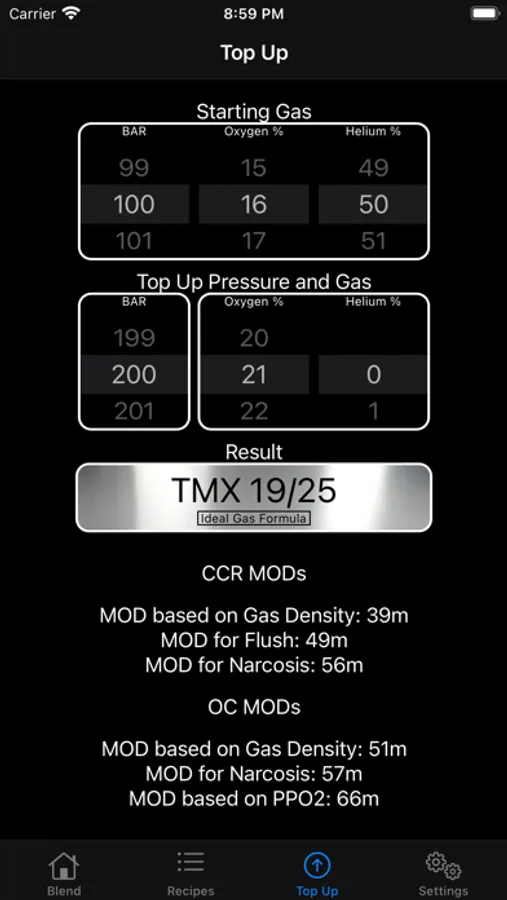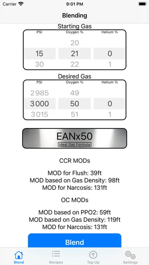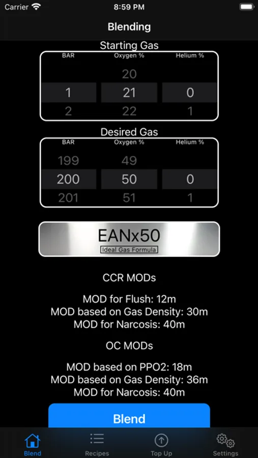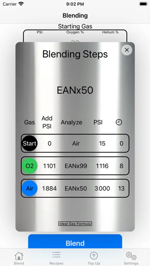 Gas Blender will help you to mix Nitrox and Trimix gasses for scuba diving.