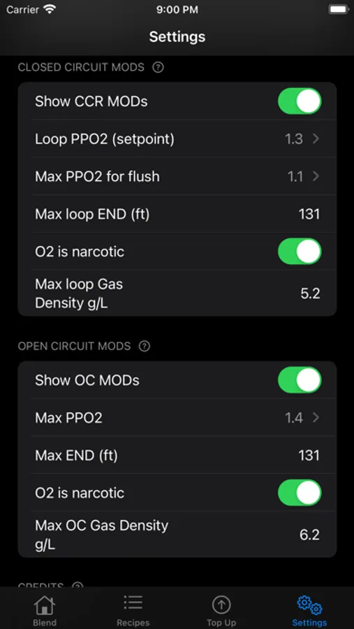 When planning your gasses you can also see the MODs based on Narcosis, Gas Density and Oxygen toxicity for bottom gas, deco gas and CCR (individually selectable).