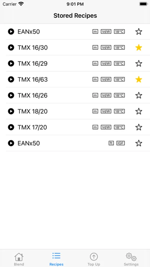 Gas Blender keeps the mixes you have planned so you can refer to them without having to enter the information again.