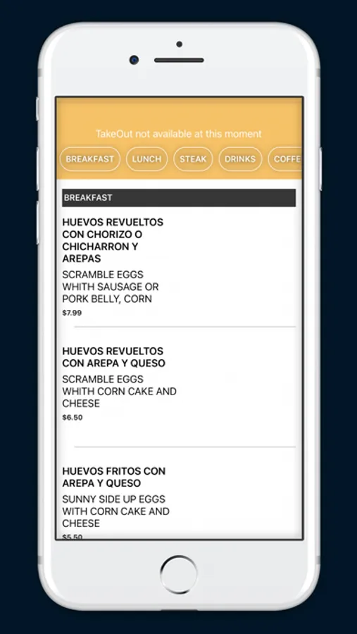 With Cafe & Sabor App you can easily order your favorite food to pick up at our restaurant. All you need to do is open the app, look up in our menu, select your favorites, and your ready to go. You will have access to our full menu, day special, and track your order. Also, you could save your account info as well your previous orders, ask for special instructions. Just download, order, enjoy, and order again.