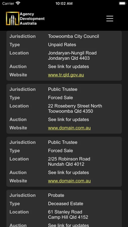 Though our unique patented coding we are able to provide you with immediate information as it relates to Local Council delinquent rate payers to Police Auctions. There are so many various auction sites and they are located far and wide geographically around Australia.