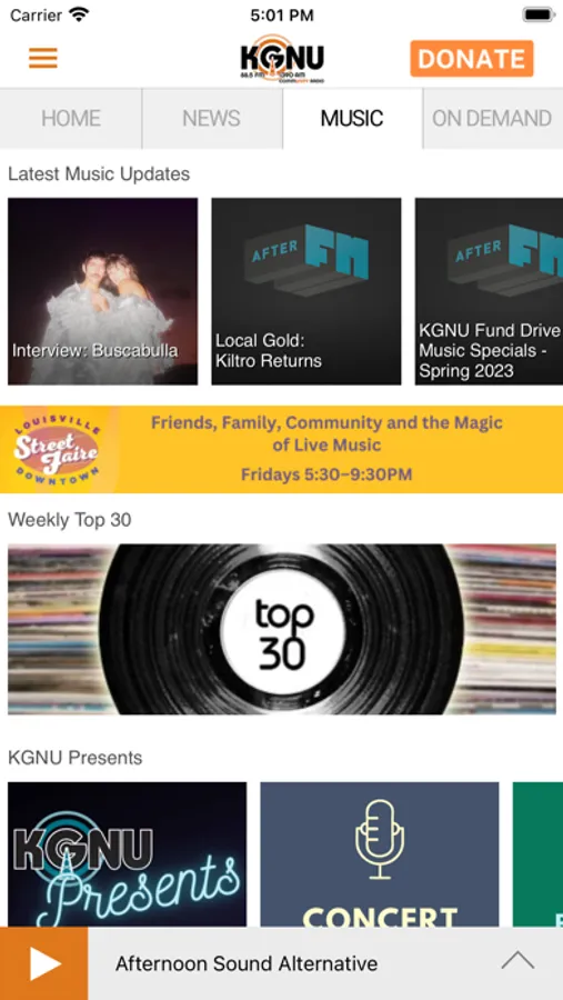• One click stream switching – flip between KGNU, AfterFM, and our podcasts in an easy click!