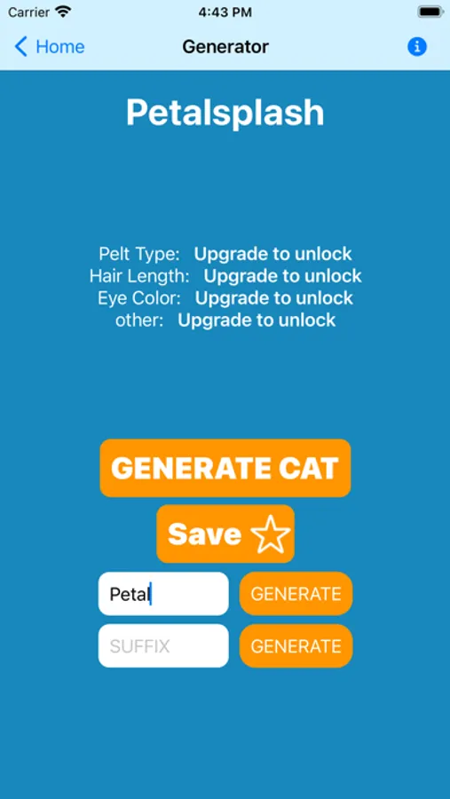 Make your own cat from scratch! Build from a variety of generated names and designs or choose your own names to customize. Save your favorite cats forever and give them a story.