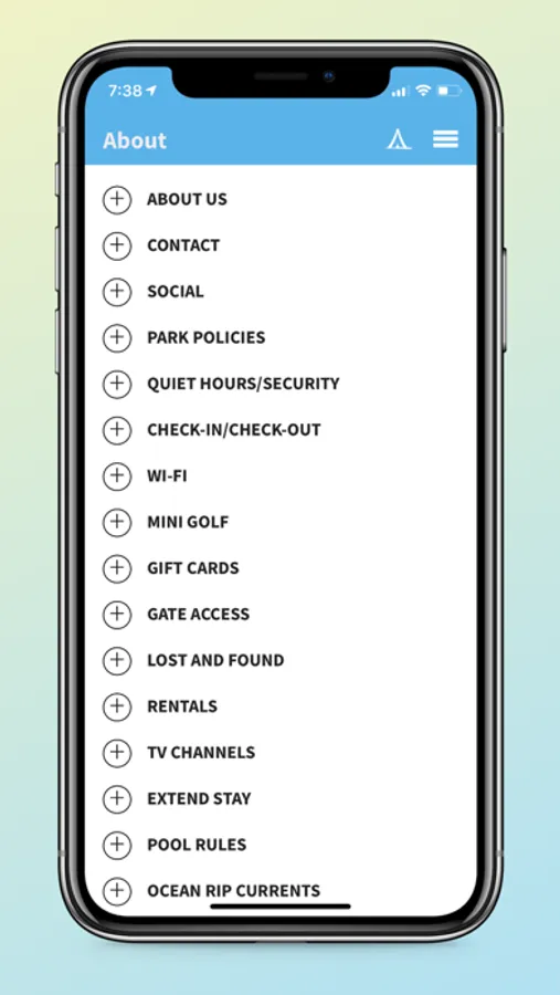The Ocean Lakes’ App highlights a lot of helpful campground info under About Us.
