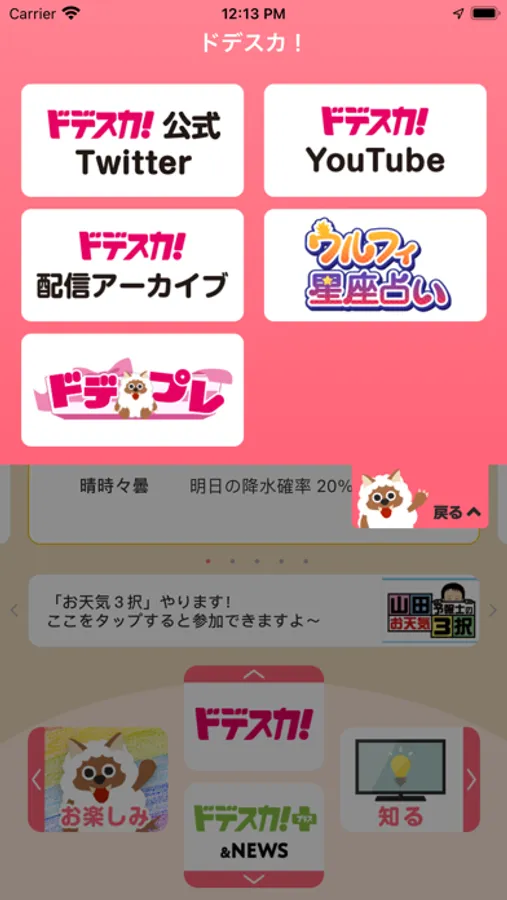 朝の情報番組「ドデスカ!」(平日6:00~8:00)のコンテンツ(Twitter、YouTube等)に簡単アクセス!