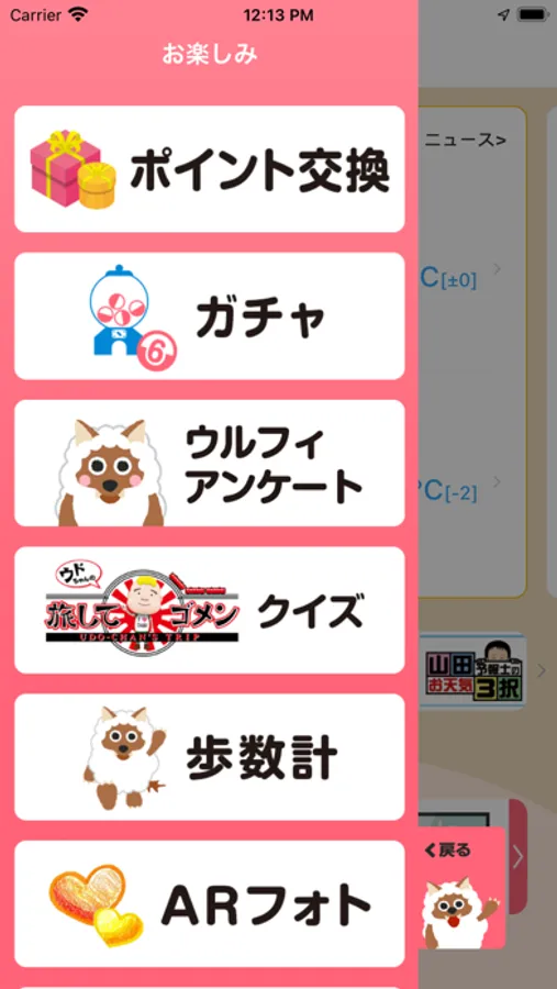 クイズ、アンケート、歩数計など、毎日楽しめるコンテンツが満載!