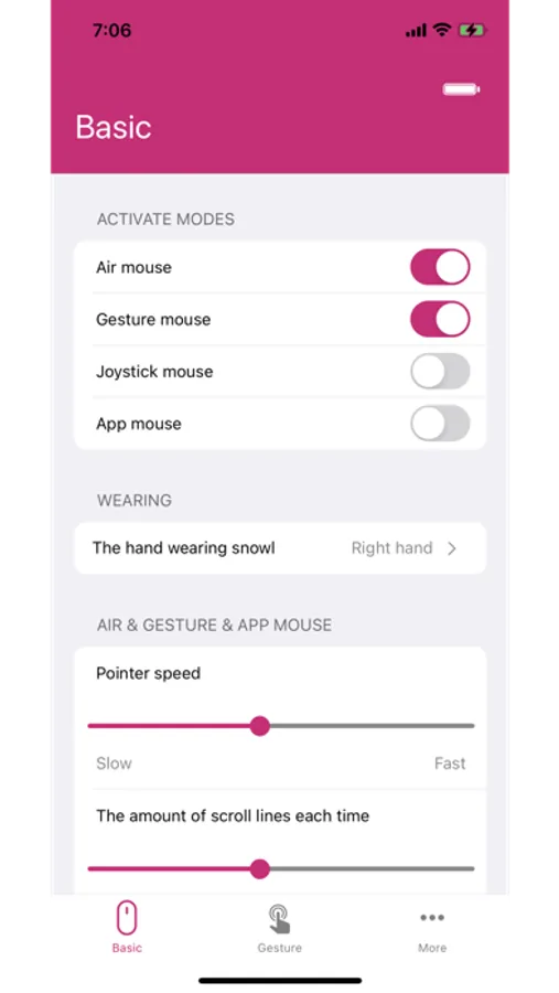 Joystick Mouse Mode : Once the Snowl ring is placed inside its charging cradle, it can be used as a joystick mouse and perform the same functions that a traditional mouse can.