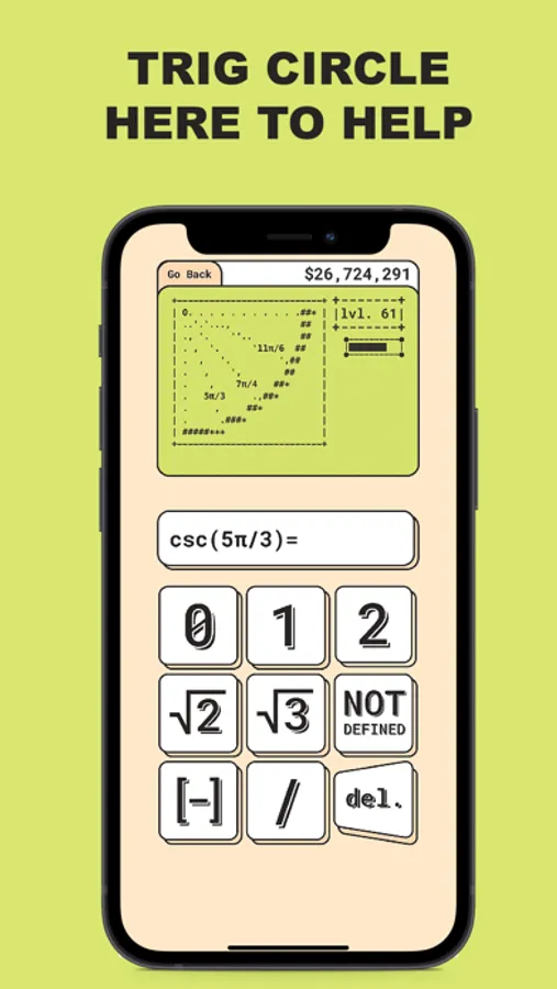 TRIGONOMETRY. I think we can all admit that the unit circle can be tricky. Through the exp system, you can work at your own pace and master sin(0) before being overwhelmed by cot⁻¹(-1). If you are already a master of sin and cos you can blow past those problems and gain some easy in-game money! For those of you who struggle with trigonometry there's even a unit circle to help!