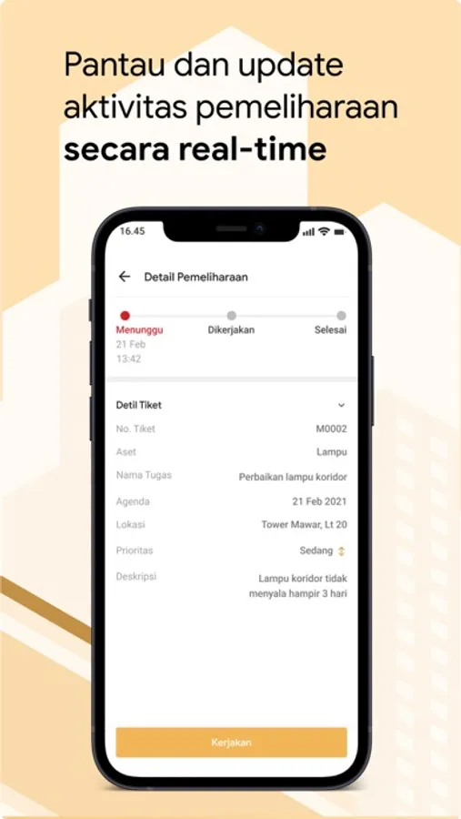 Tenant dapat dengan mudah mendapatkan informasi dan memonitor aktivitas maintenance (pemeliharaan) rutin disekitar gedung.