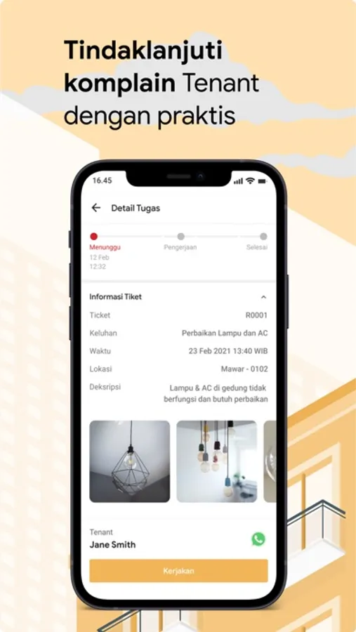 Laporkan gangguan / komplain / masalah yang ditemui disekitar dengan cepat dan instan. Setiap progress penyelesaian laporan akan diinformasikan kepada Tenant secara real-time dan transparan.