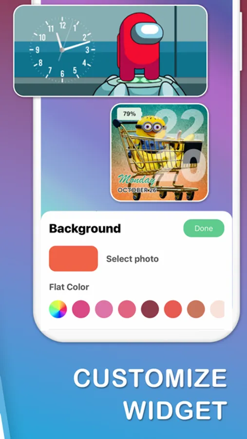 The application is designed for you to customize the size, background, text color, and fonts to suit your home screen.