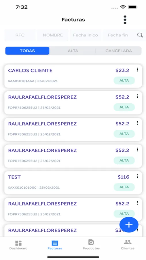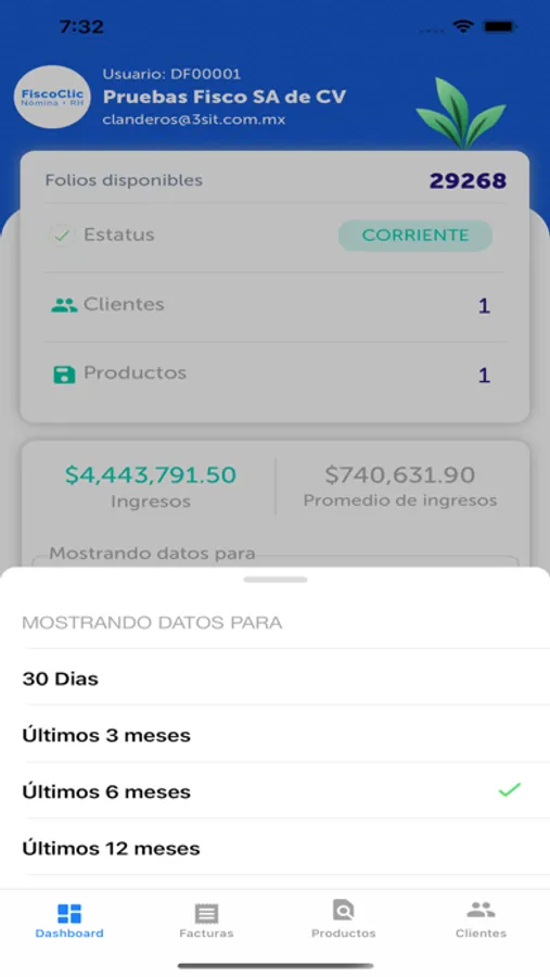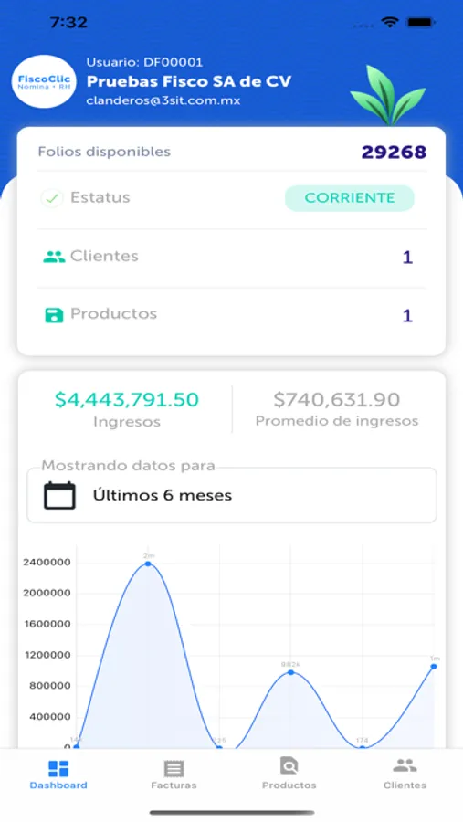 En FiscoClic Mobile puedes realizar facturas rápidamente, consultar facturas anteriores, agregar clientes y productos e incluso consultar tus ingresos sin contratiempos con la información que ya tienes en el portal web