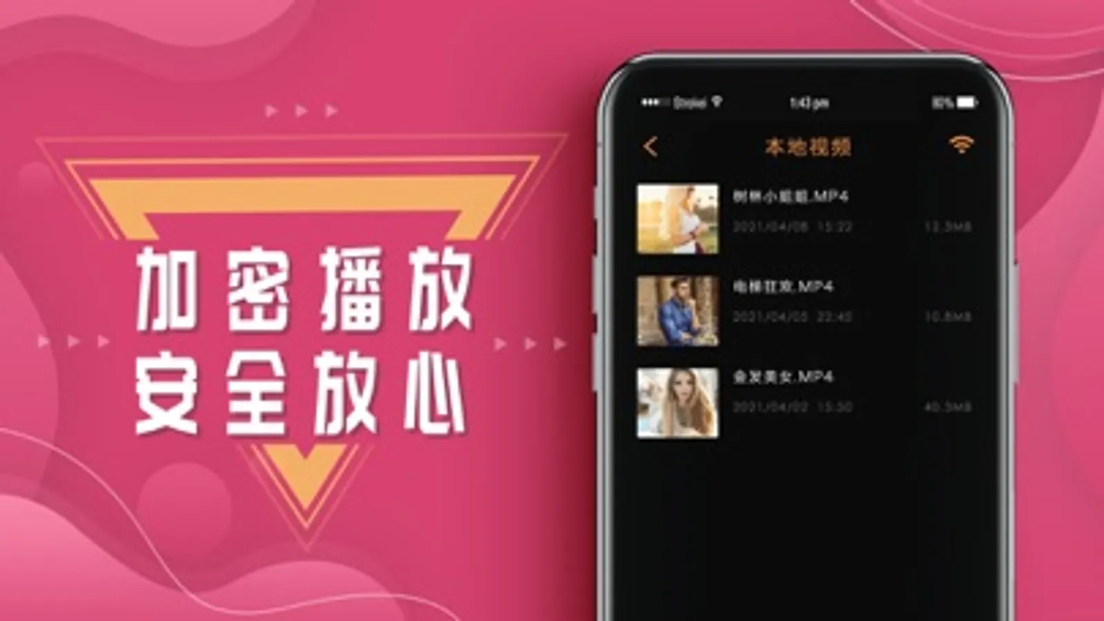 视频播放:本地视频,WiFi导入,快捷方便,视频加密,安全放心,网络播放