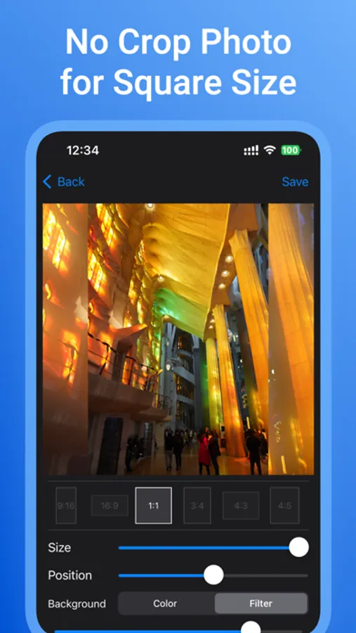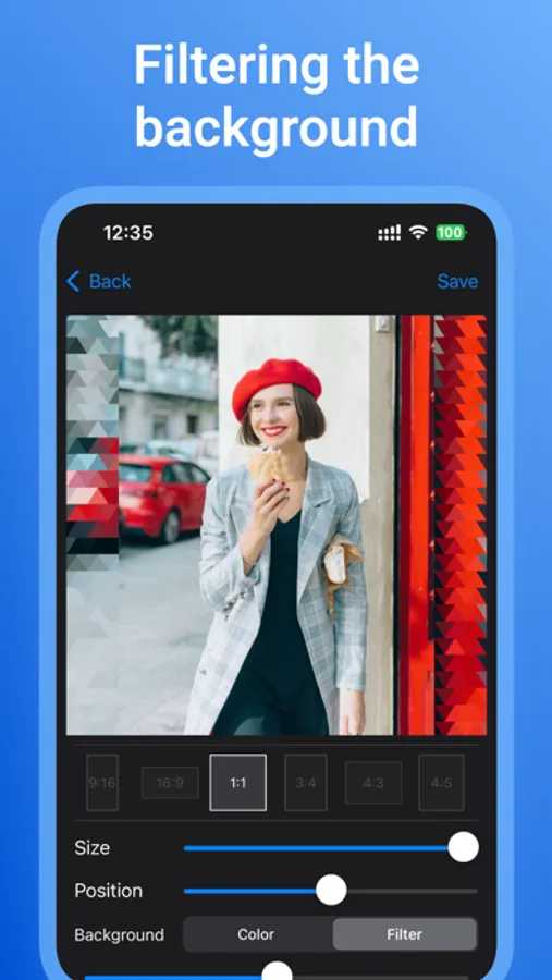 - Apply more than 10 types of filters such as blur, mosaic, encapsulation, monochrome, print, etc.