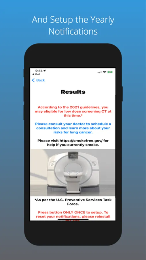 The information in this app will be used to help increase awareness for screening low dose CT to help diagnose lung cancer at an earlier stage to hopefully improve prognosis.
