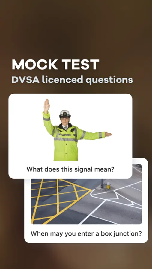 All the same type of questions you will face on the DVSA test. Explanations make it easy to learn why your answer was right or wrong.