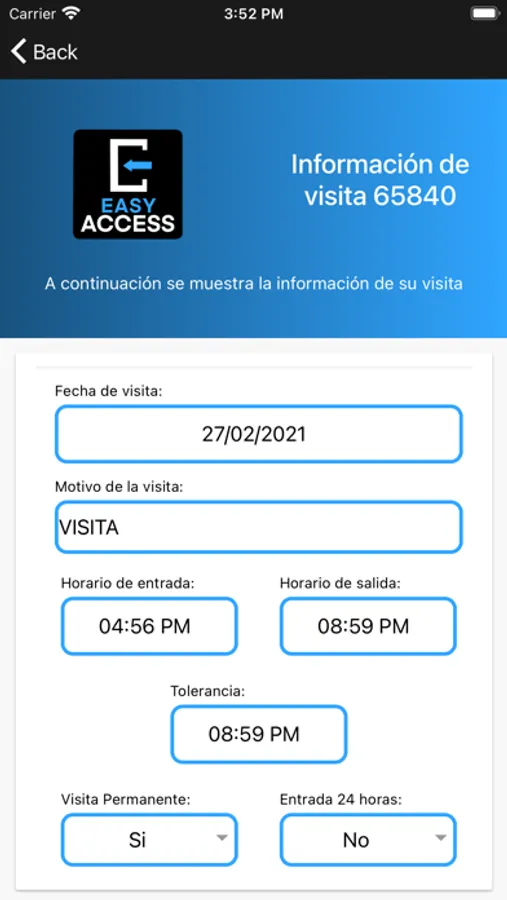 * Tus usuarios podrán generar visitas y compartir el código QR de acceso a sus invitados.