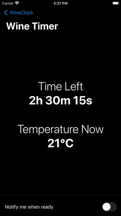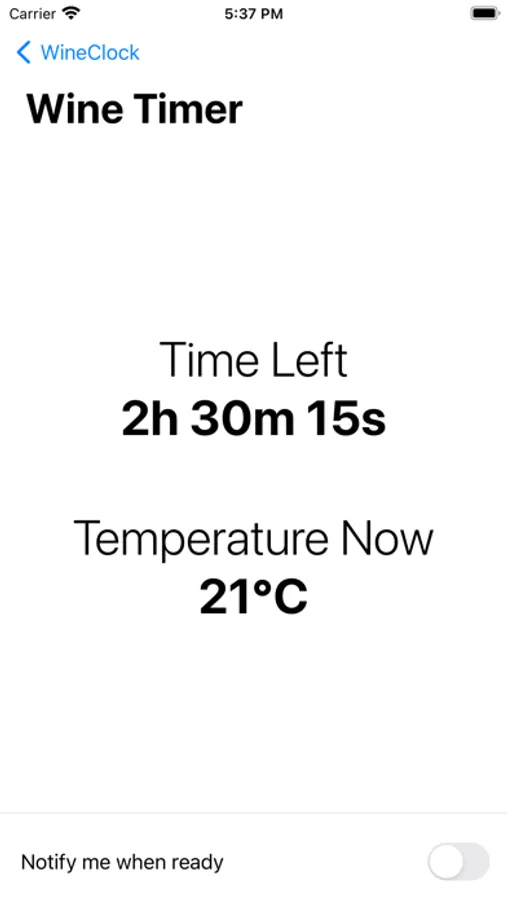 If you start the timer you will see the time counting down until drinking time, and also the current temperature of the wine. You also have the option to get a notification when the temperature has been reached.