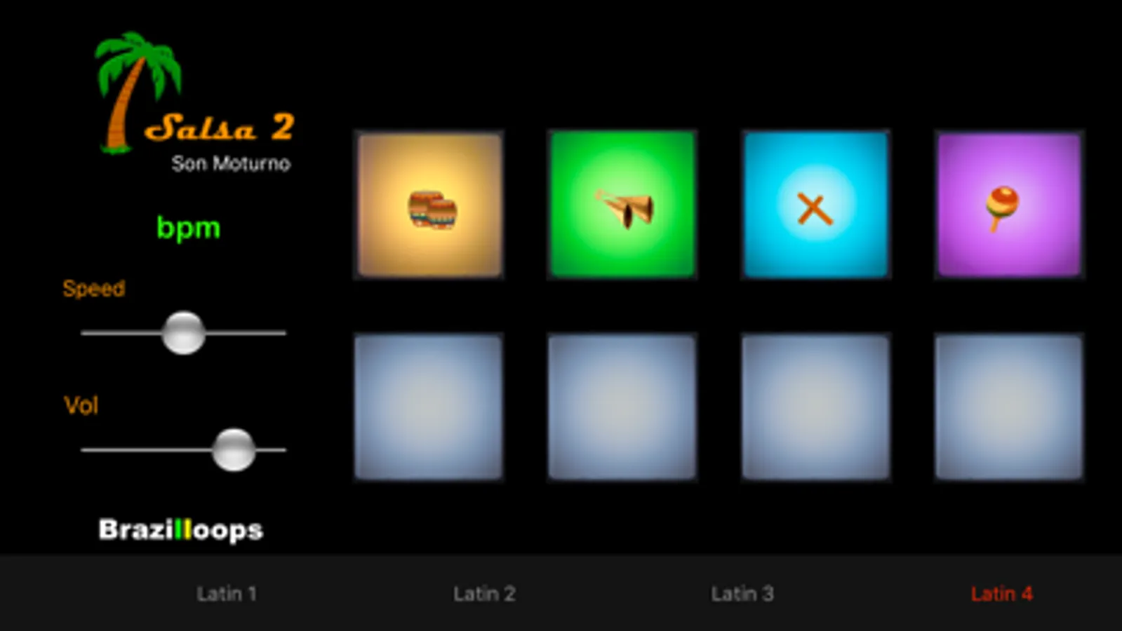 Brazilloops are proud to present you a drum loop player which seriously delivers the Salsa, Bolero, Guaguanco and Son Montuno styles recorded from the most talented percussionists.