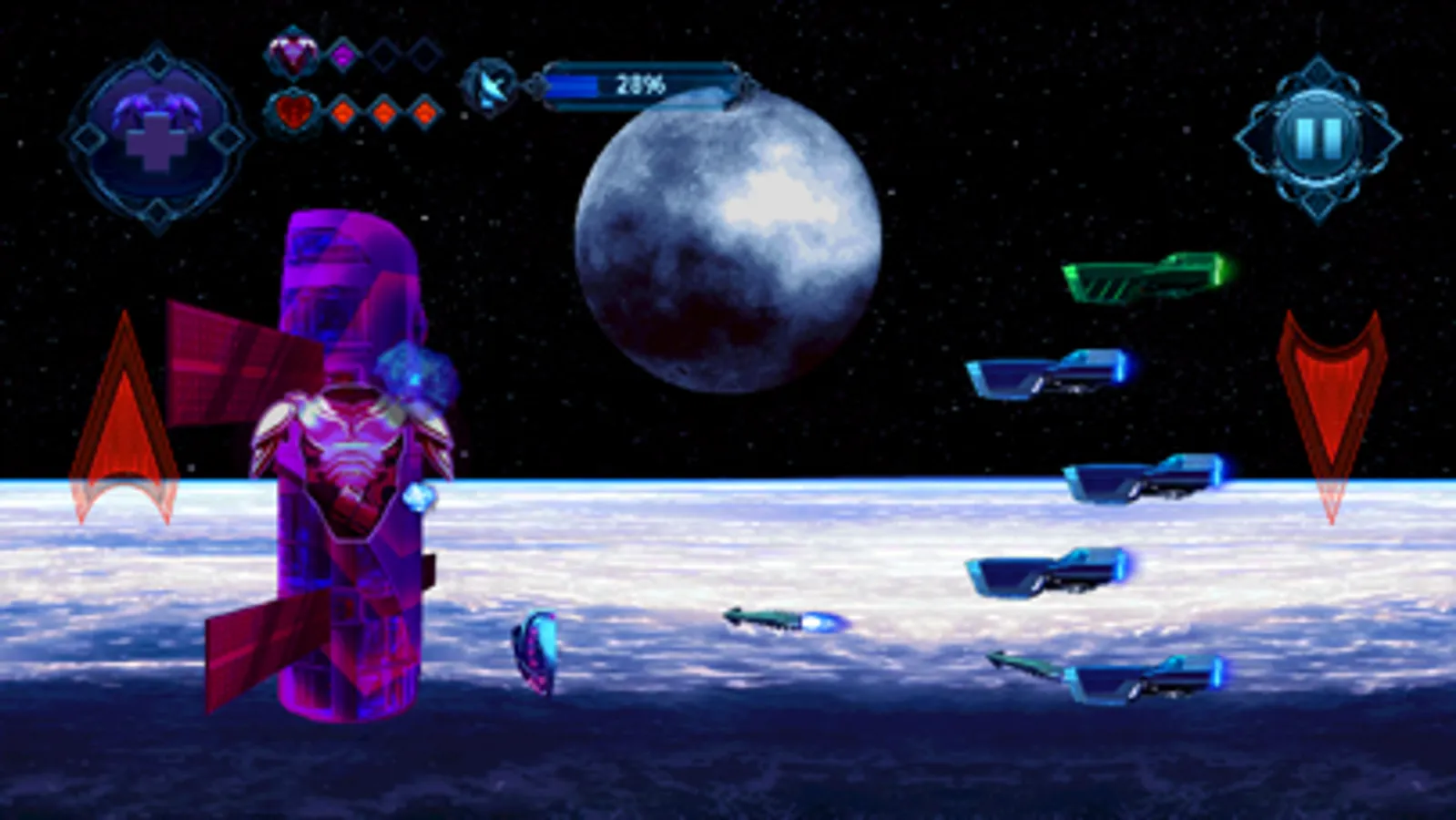 Use your galactic shield to defend the satellite tower from the space pirates. Withstand the oncoming missiles long enough for the satellite tower to finish its download process to reveal a secret blueprint. This blueprint contains valuable information, as it is the key to cure all human diseases! Only those who can endure throughout the invasion can discover the mystery.