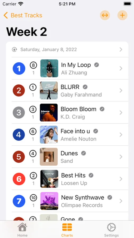 With Chart Your Music you will be able to create collections of charts (e.g. Top 40 2022, Best Albums 2022) of the music you love and then create charts ranking your songs, albums, tracks, either daily, weekly, monthly, unordered. Over time, Chart Your Music will become your musical diary.