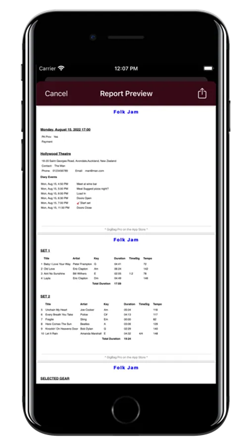 Not sure yet? Try out the free versions of the GigBag family; "GigBag Gear Checklist Manager" and "GigBag Song Setlist Manager"