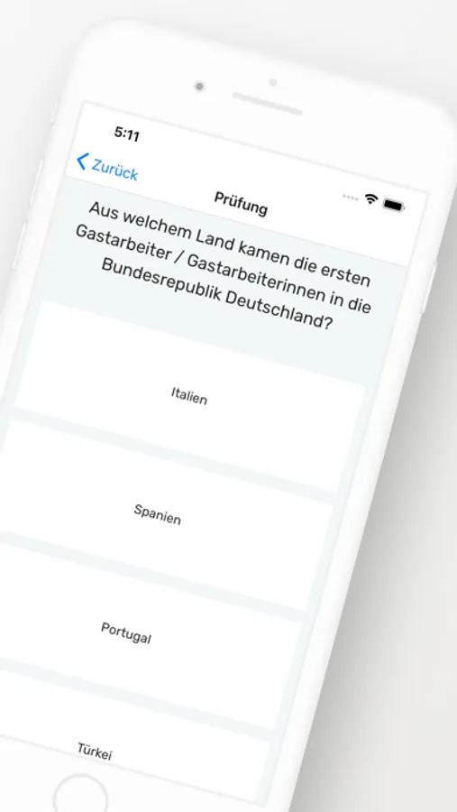 Dieser App enthält 300 Grundfragen des offiziellen Einbürgerungstests. Zu jeder Frage werden vier Antwortmöglichkeiten vorgegeben, von denen genau eine richtig ist.