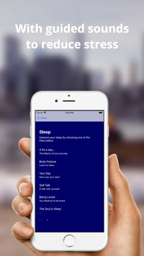 Join many people who have improved their sleep and started to sleep better and for a longer time downloading Po right now. Learn to sleep better, breathe better and reduce your stress.