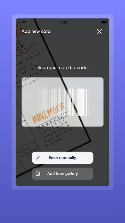 Add all your cards in a few seconds by simply scanning the code from your card.