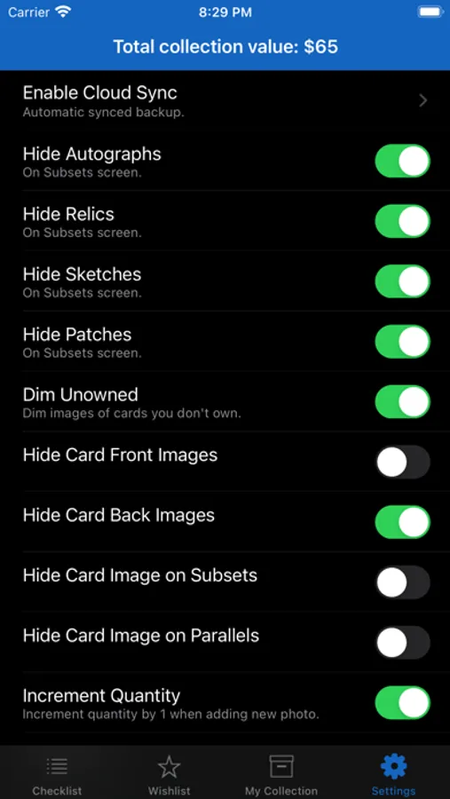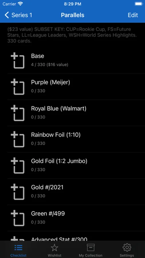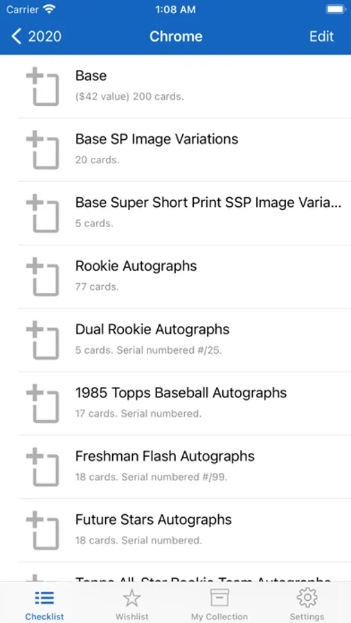 The checklist in the app will grow WITHOUT the need for a future app update, as the database is pulled directly from our servers. Future features include eBay integration, card scanning, PSA/BGS pop reports, customizable grid display, upcoming set release dates, and more.