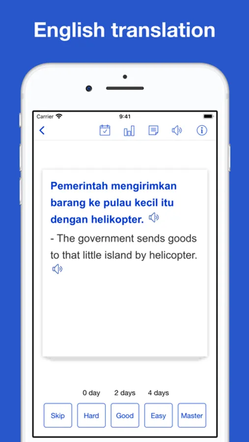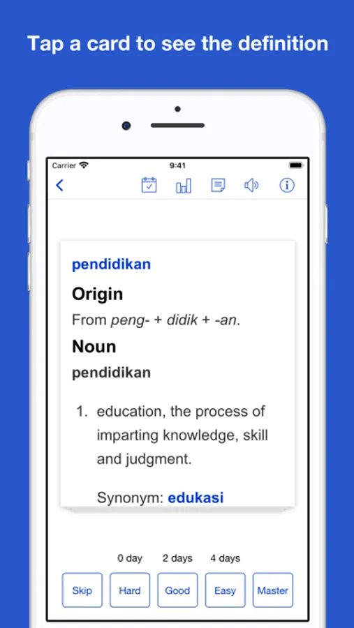 • Use flashcards to learn Indonesian vocabulary and sentences