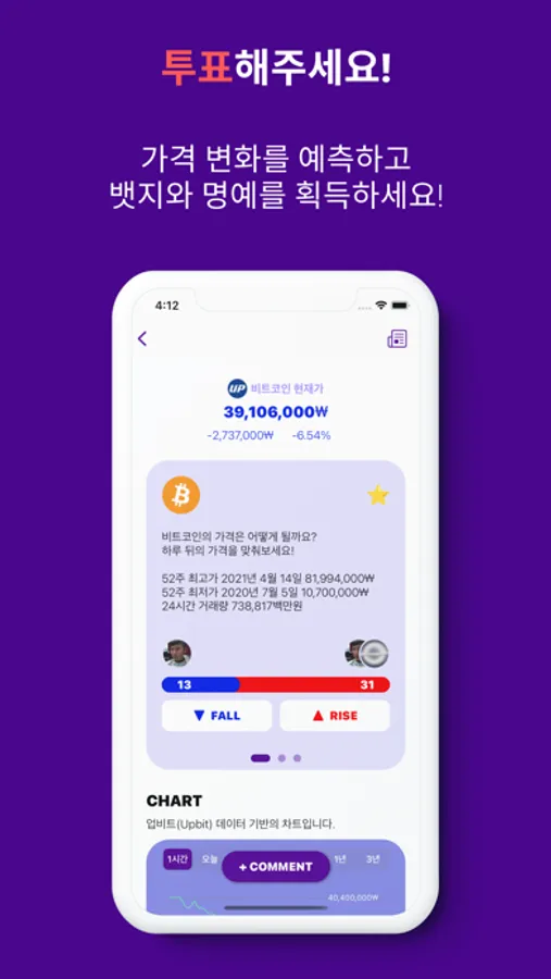 코인의 가격 변동에 대한 생각을 투표를 통해서 보여주세요. 가격 변동에 대한 투표를 맞추게 되면 코인하우스에서 여러분에게 뱃지를 증정해드립니다. 뱃지를 모아서 투자자님의 예측력을 자랑해보세요! 여러분의 생각에 대한 글을 SNS 처럼 남기며 투자자들과 정보를 나눌 수 있습니다.